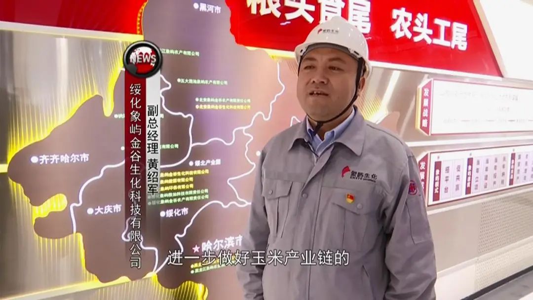 绥化象屿金谷生化科技有限公司副总经理 黄绍军:一方面做好“一条链”,进一步做好玉米产业链的延链、强链和优链。另一方面,做大“一个园”,依托招商合作和自主发展双管齐下,构建优势产业集群。