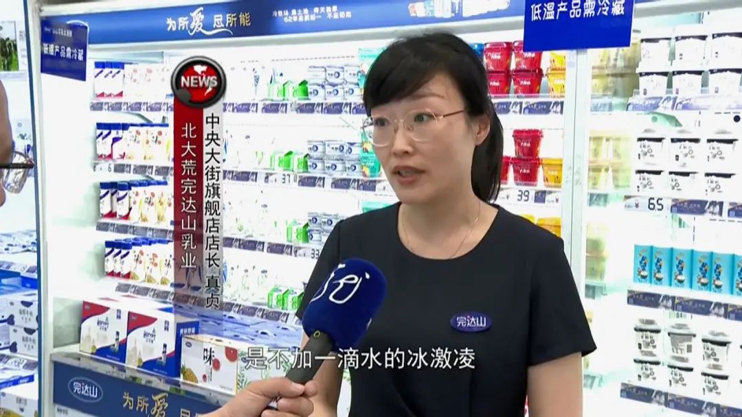 北大荒完达山乳业中央大街旗舰店店长 真贞:我们热销的是不加一滴水的冰激凌,奶茶也是用自己的产品,通过衍生品让更多的消费者了解完达山的产品。
