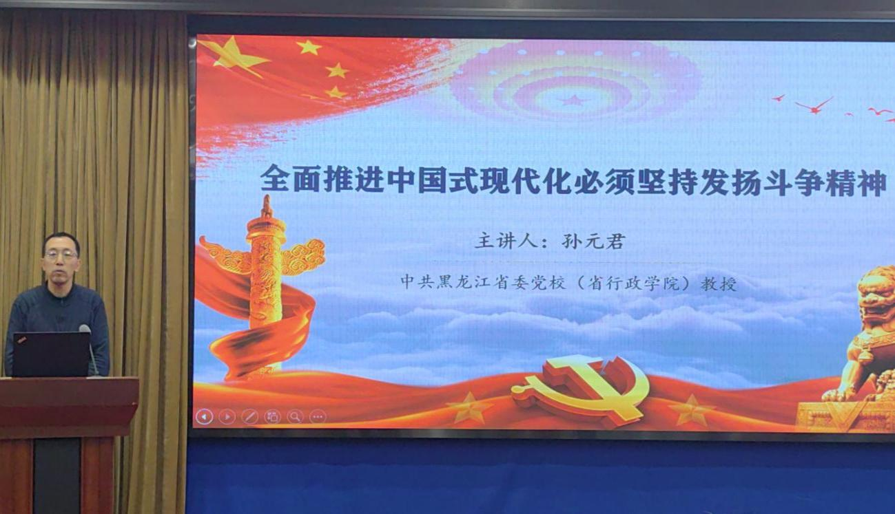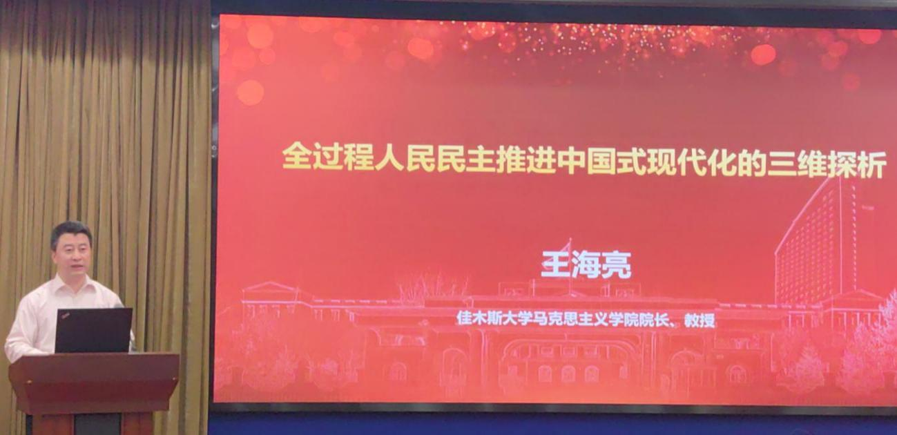 哈尔滨师范大学马克思主义学院院长刘爱军教授、黑龙江大学哲学学院院长蒋红雨教授、佳木斯大学马克思主义学院院长王海亮教授、黑龙江省社会科学院法学研究所副所长(负责人)李店标研究员、东北农业大学马克思主义学院副院长赵继颖教授、中共黑龙江省委党校(黑龙江省行政学院)政治和法律教研部孙元君教授,分别以“新时代文化主体性的中国式现代化之维”“绿色生活——作为中国式现代化的生活世界”“全过程人民民主推进中国式现代化的三维探析”“法治是中国式现代化的重要保障”“新质生产力赋能数字乡村发展——以黑龙江省为例”“全面推进中国式现代化必须坚持发扬斗争精神”为题,作了高水平主题发言。