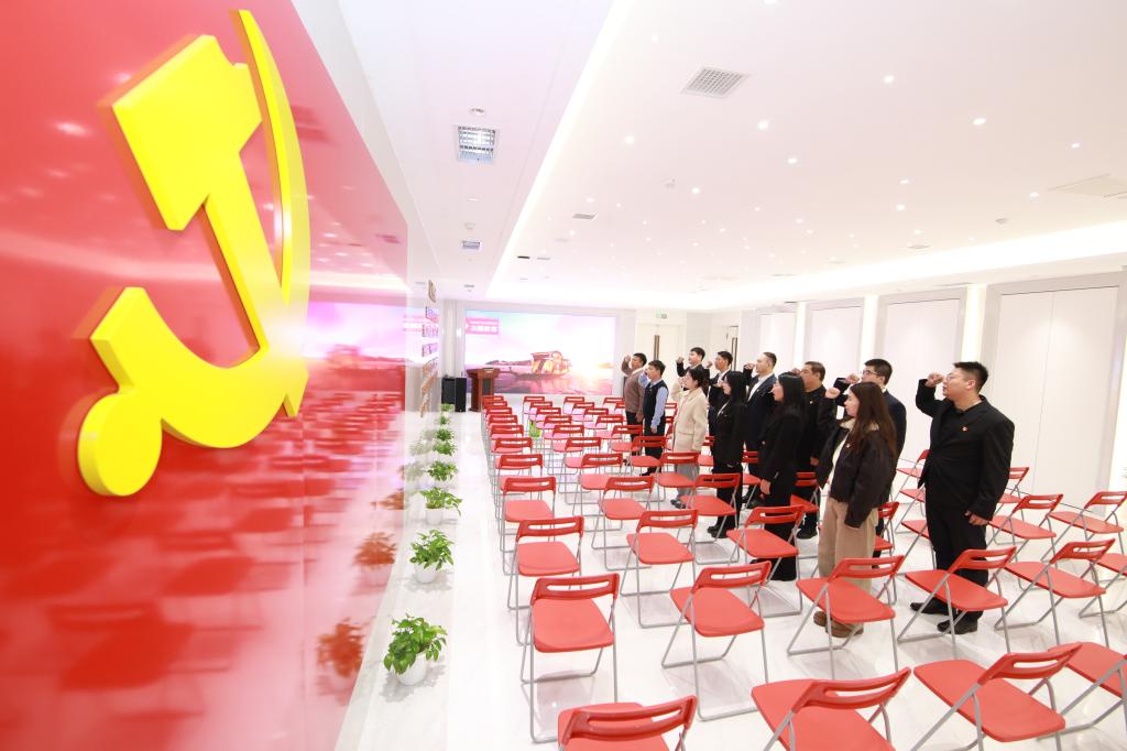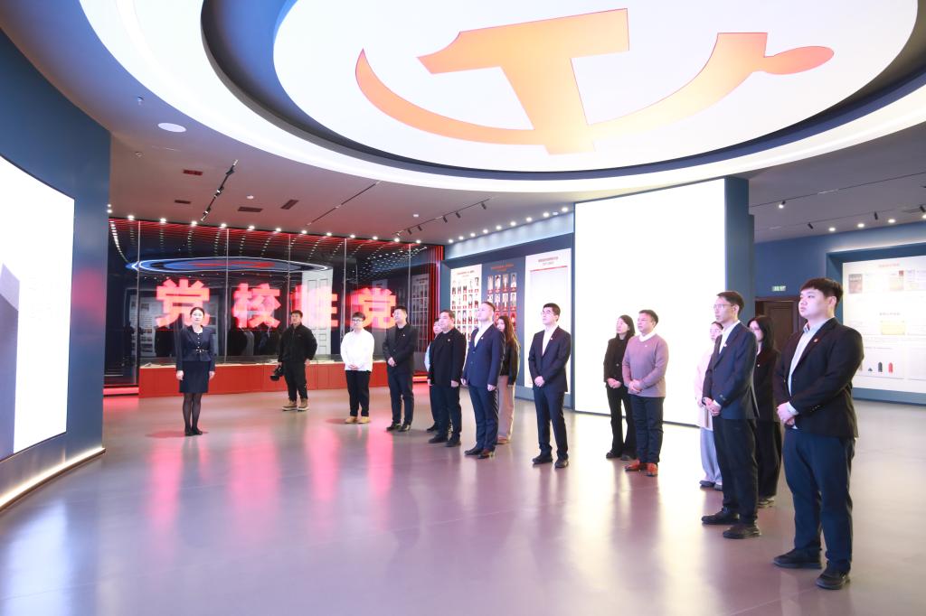 培训首站走进习近平新时代中国特色社会主义思想主题教室。新职工认真聆听讲解、驻足观看展陈,在历史与现实的交响中,深刻感悟马克思主义中国化时代化的思想魅力与真理力量。随后,全体新职工面向鲜红党旗,庄严举起右拳,重温入党誓词,誓言铿锵。这堂“入党校第一课”,将“党校姓党”的根本原则与“为党育才、为党献策”的初心使命,深深烙刻在每个人心中。