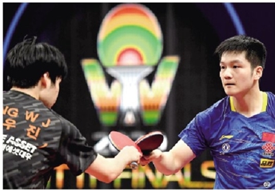 图①为22日,在男子单打决赛中,中国选手马龙以4比1战胜队友樊振东,夺得冠军。