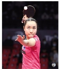 图②为20日,日本选手伊藤美诚在比赛中发球。