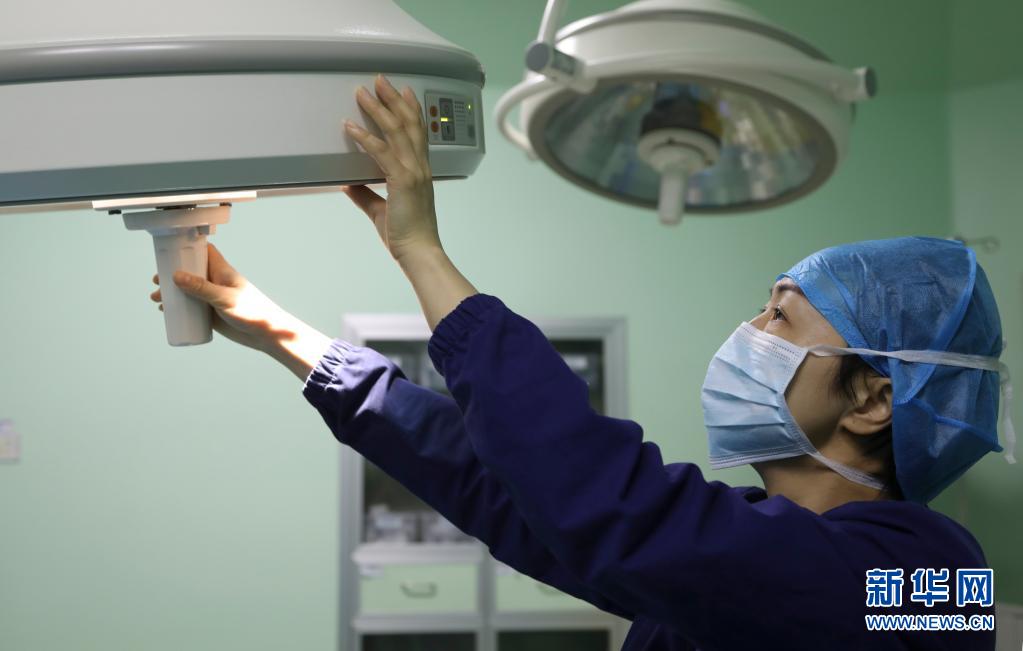 周馨瑜在甘肃省肿瘤医院麻醉手术科工作(3月19日摄)。新华社记者 马莎 摄