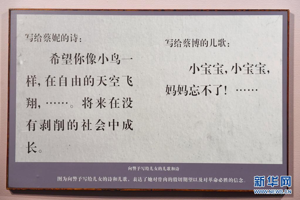 这是湖南省溆浦县向警予同志纪念馆展示的向警予写给儿女的诗和儿歌(3月6日摄)。新华社记者 陈泽国 摄