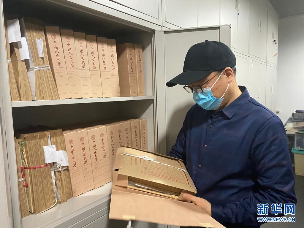 张丁在中国人民大学家书博物馆查看从民间征集的家书(3月10日摄)。新华社记者 李亚彪 摄