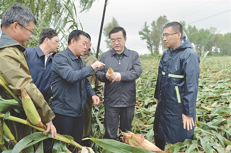 省委书记、省人大常委会主任张庆伟在哈尔滨调研台风影响农业受灾情况。