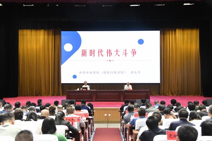 郝永平教授从历史和现实相贯通、国际和国内相关联、理论和实际相结合的宽广视角,深刻阐释了新时代伟大斗争的时代背景、基本涵义、历史特点、合理边界、实践要求等五个方面的基本问题,将习近平总书记关于伟大斗争的重要论述与马克思主义斗争观贯通起来,同推进中国式现代化的具体实践贯通起来,同应对世界之变、时代之变、历史之变策略方法贯通起来。整场讲座主题鲜明、思想深刻、视野开阔、资料详实,通过科学审视当前中华民族伟大复兴战略全局和世界百年未有之大变局的重大特征,讲明新时代伟大斗争呈现出鲜明的时代特色和丰富内涵,又紧密联系新时代新征程党和国家事业发展的新要求、人民群众的新期待,讲明新时代伟大斗争的实践要求和策略方法,使广大教职工、学员充分认识到伟大斗争的长期性、复杂性、艰巨性,从而更好把握使命要求,把握事业走向,提高斗争精神和斗争本领。