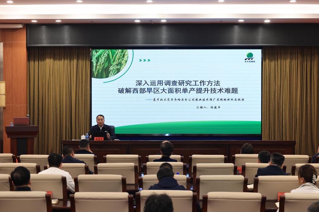 在学员案例展示环节,特邀我校(院)在校中青班学员,北大荒集团齐齐哈尔分公司党委副书记、总经理陈建平同志展示开展调查研究的成功案例。他以北大荒集团为例,围绕着如何在基层运用调查研究工作方法,破解西部旱区大面积单产提升难题的一些具体实践展开精彩介绍。