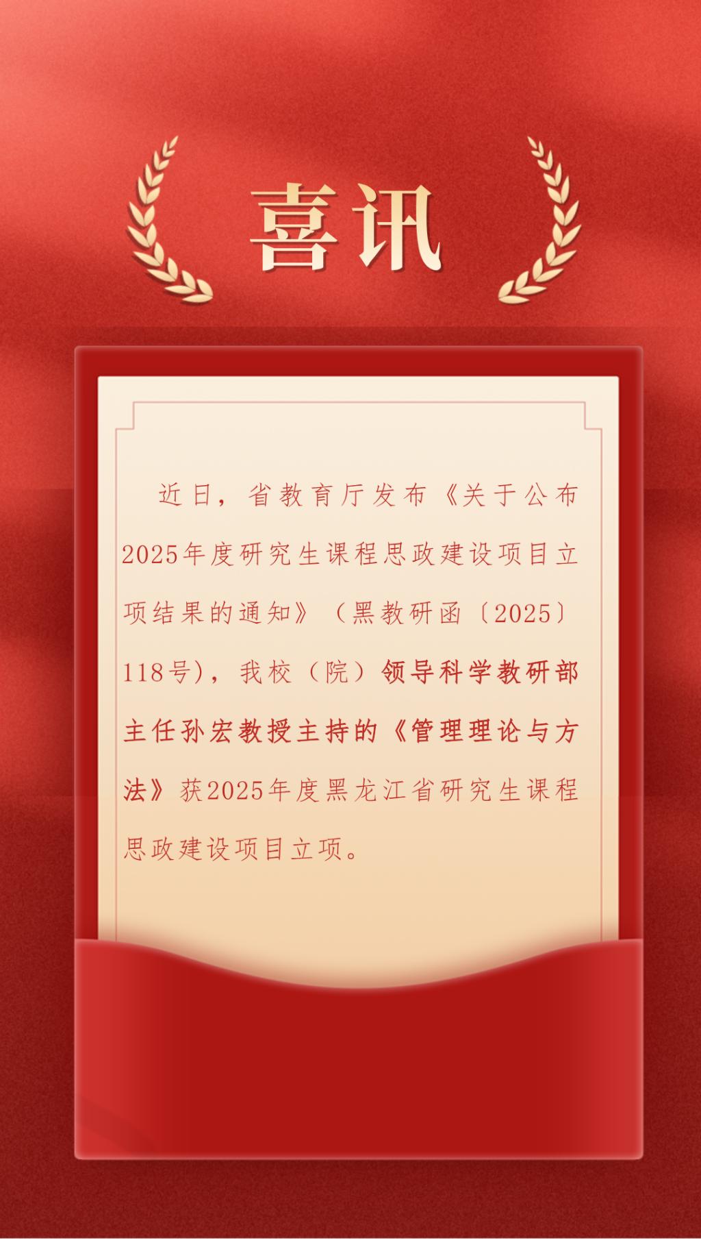 此次申报的研究生课程思政建设项目系我校(院)首次参与,并获批立项。我校(院)将以此为契机,不断加强项目建设,做好示范引领,为全面提升我省研究生课程思政建设水平,构建具有龙江特色“中国方略,龙江实践”课程思政教育体系,深入推进研究生课程思政和导学思政高质量建设贡献力量。