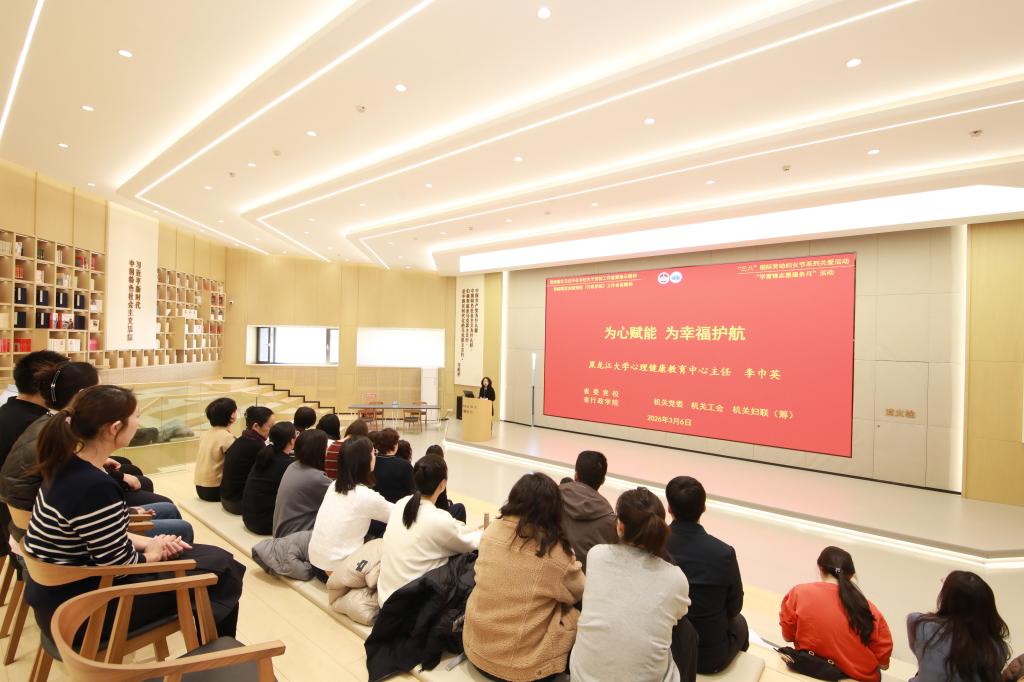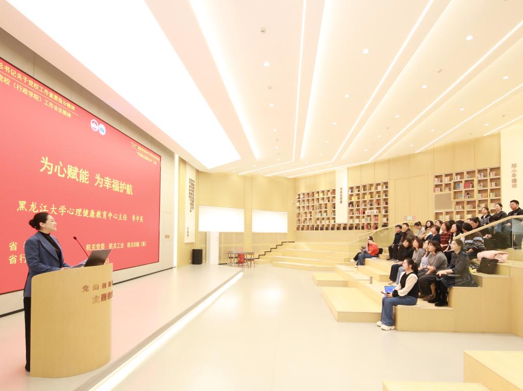 为深化教职工人文关怀,关心关爱教职工身心健康,引导大家舒缓工作压力、提升心理健康素养,以积极饱满、健康向上的精神状态投身工作,3月6日,校(院)联合黑龙江大学心理健康教育中心举办心理健康讲座,邀请黑龙江大学心理健康教育中心主任李巾英教授围绕“为心赋能,为幸福护航”进行专题辅导。活动由机关党委女工委员、机关工会副主席陈晨教授主持,校(院)教职工参加。