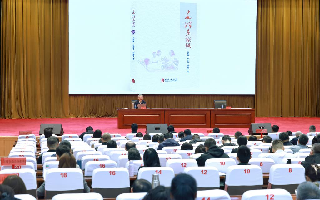 习近平总书记高度重视推动全民阅读,强调“要提倡多读书,建设书香社会,不断提升人民思想境界、增强人民精神力量,中华民族的精神世界就能更加厚重深邃。”4月21日下午,省委党校(省行政学院)邀请《毛泽东家风》作者、中国应急管理学会孔祥涛教授,以“毛泽东家风——中国共产党人家风的伟大旗帜”为题作专题辅导。写书人、读书人齐聚现场,共话创作本心,共同感悟伟人家风蕴含的道理学理哲理。