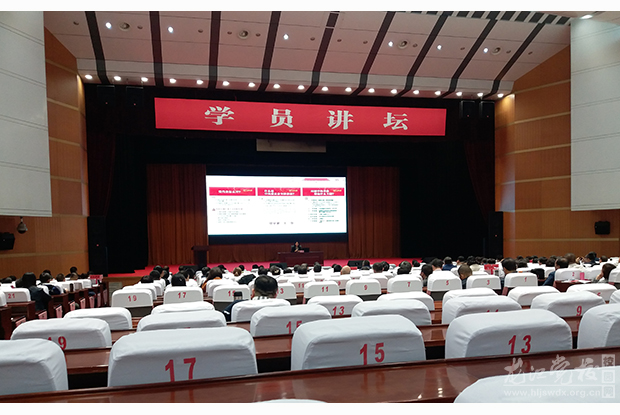 省管干部任职班学员邹德堂以《乡村振兴中农业面临的挑战与发展策略》为题,结合自身的科研方向向大家介绍和分析了我国农业目前存在的问题和未来发展的策略;省管企业领导人员进修班学员刘东光结合龙煤集团的现实境遇和改革进展,向大家介绍了龙煤集团改革脱困的具体措施,展现了龙煤人坚定推进改革的强大信心和决心;第39期正处级干部进修班经济方向学员潘湘波从我省行政复议法律制度的实践和改革出发,介绍了我省行政复议工作的现实情况和发展历程;第39期正处级干部进修班科教文卫方向学员罗跃军从哲学社会科学的重要性、现实问题以及发展方向三个方面,带领大家重温了习近平总书记“五一七”讲话,并对我省哲学社会科学发展的整体形势进行了介绍;第4期青年干部战略培训班学员刘政胤以详实的数据为基础,深入分析了当前我国网络意识形态领域的复杂问题,并通过共青团组织积极引导网络舆论的典型实例,提炼了网络舆情引导的具体方法和步骤;第41期省直处级公务任职班学员郑翠贤以《党章知识面对面》为题目同大家分享了党章背后的故事,使大家以一种别样的方式进一步加深了对于党章的理解;同样来自第41期省直处级公务员班的学员周志茹向大家介绍了畜牧产业供给侧结构性改革和全省绿色有机食品产业发展的相关情况,并有针对性地回应了现实问题,消除了大家对于畜牧产业产品消费中存在的一些顾虑。七位学员的发言内容丰富、层次清晰,紧贴实际,讲授亮点纷呈,或深入阐述,或精辟论证,或旁证博引,或图文并茂,或娓娓道来,整个“学员讲坛”气氛热烈,富有理论性和实践性,使学员们在思考中获得提升,在交流中取得收获。