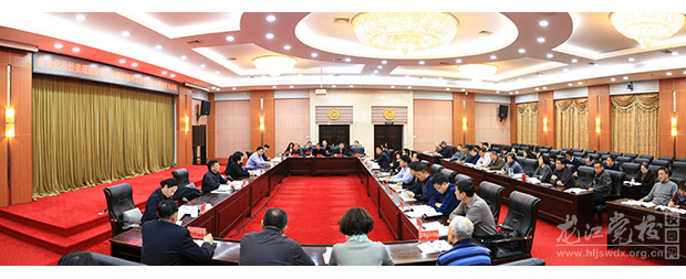 会议强调,党校事业作为新时代党的事业的重要组成部分,承担着理论武装、思想引领、阵地导向等重要职责。党校的性质功能定位,决定必须长期把学习贯彻党的十九大精神作为办好党校、履职尽责的重要遵循,作为当前和今后一个时期的首要政治任务,我们要深刻领会中国特色社会主义进入新时代这一新的历史方位,提高政治站位,保持政治定力,发挥党校独特优势,争取党校更大作为,切实把党校打造成为举党旗、育党人、立党言、尽党责的红色学府。我们要在全面落实“三个下功夫”、准确把握“五个聚焦”的基础上,突出抓好“四个方面”,进一步彰显党校职能,发挥党校作用。一是发挥理论武装主渠道作用,迅速推动十九大精神进课堂、进头脑。通过举办省管干部学习十九大精神专题研讨班、系统学习十九大精神师资培训班、基层宣讲骨干学习十九大精神培训班等,推动十九大精神的学习实现全覆盖、延伸到基层;通过大幅度调整主体班、对外培训班教学专题设置,硕士研究生班、在职研究生班开设相关辅导专题,及时更新教材,聚焦党的十九大精神,开发、打造一批精品课程;通过学员讲坛、论坛、班级微论坛等平台,综合运用结构化研讨、师生互动交流等教学方式,引导教师学深教透、学员学深悟透,促进教学相长、学学相长;通过组织校(院)骨干教师赴地方党校(行政学院)进行宣讲,为基层党校(行政学院)学习十九大精神提供师资力量。二是发挥党校(行政学院)理论宣传重要阵地作用,全方位开展十九大精神的学习宣传工作。通过选派骨干教师参加省委宣讲团宣讲,配合省委宣传部完成省委安排的宣讲任务;通过组建校(院)宣讲团队,深入省直机关、市(地)及县(区)、高校、国有企业、部队开展宣讲工作,扩大党校的社会影响力;通过在《黑龙江日报(理论版)》推出我校(院)专家学者系列理论文章,在省电视台、省电台推出我校(院)专家学者系列访谈节目,在《奋斗》和《黑龙江通讯》等杂志、人民网黑龙江频道等网络媒体上发表理论文章,对十九大报告进行精准解读,持续发出党校声音,形成报纸有版面、电视有影像、广播有声音、网络有专栏的全媒体宣传格局;通过在《理论探讨》《行政论坛》设置专栏,做好选题策划,加大组稿力度,围绕“学习贯彻党的十九大精神专题研究”刊发理论文章,提升《理论探讨》《行政论坛》在全国期刊界的影响力。三是发挥特色新型智库作用,及时向省委省政府提出决策咨询对策建议。通过在《学习研究参考》推出“十九大报告关键词解读”专刊,对报告中的关键词进行准确解读;通过召开校(院)和全省党校(行政学院)系统学习贯彻党的十九大精神两个层面的理论研讨会,立项校级专项课题和全省系统专项课题,积极组织申报省社科规划专项项目、全国党校和行政学院系统专项课题,不断推出理论研究成果;通过依托校(院)“三中心两论坛”、校(院)省级哲学社会科学研究基地、校(院)省首批重点培育智库和校(院)省级领军人才梯队,充分汇资源、聚人才,举办各种讲坛、论坛、学术研讨会,为持续推动学习宣传贯彻落实十九大精神搭建重要平台。四是做好校(院)学习安排,在学习宣传贯彻党的十九大精神中走前列、做表率。通过分设全面掌握阶段、集中学习阶段和交流提高阶段三个阶段,采取领导带头学、专家辅导学、典型示范学、支部组织学、党员自觉学的“五学”模式,确保学习宣传贯彻十九大精神覆盖到每一名党员;通过发挥校委中心组学习的示范带头作用,落实领导干部双重组织生活制度、“三会一课”制度、校(院)政治理论学习日制度,利用各种学习平台和渠道,组织支部和党员开展学习,做到学思践悟、内化于心、外化于形;通过《龙江党校》、校园网、校(院)微信公众号平台、《熔炉》、教师讲坛等各种载体,开设专栏专题,及时报道校(院)学习贯彻情况、系统学习贯彻的好做法好经验,积极营造良好氛围。