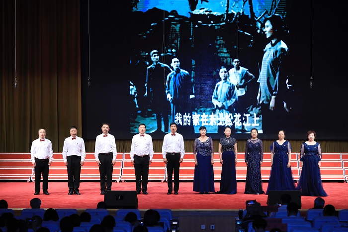 校(院)东北抗联歌曲合唱团唱响一曲曲抗联歌曲,再现了那段中国共产党领导东北抗日联军转战白山黑水英勇抗敌的历史。
