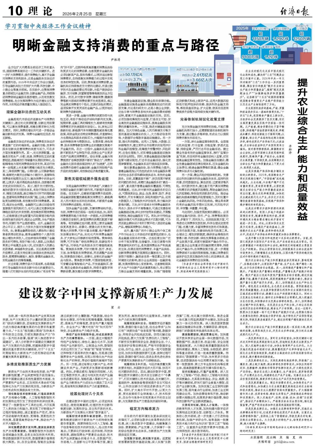 农业农村现代化关系中国式现代化全局和成色,解决好“三农”问题是全党工作重中之重。2026年中央一号文件对做好“三农”工作作出一系列重要部署,摆在首位的就是“提升农业综合生产能力和质量效益”,强调“稳定发展粮油生产”“加强耕地保护和质量提升”。这些都为“十五五”时期持续增强我国粮食等重要农产品稳产保供能力以及农业产业韧性指明了方向。
