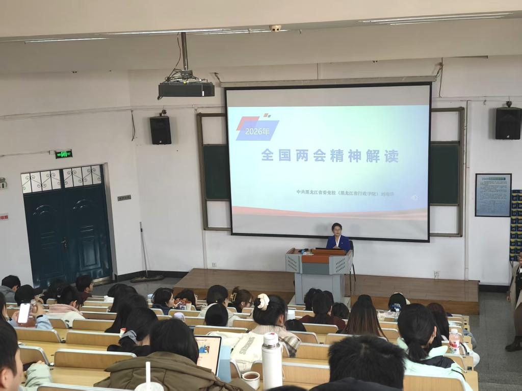 为深入学习贯彻全国两会精神,推动党的创新理论在青年学子中入脑入心,3月27日下午,省委党校举办“2026年全国两会精神解读”专题辅导。校(院)名师、二级教授刘瑞华应邀作专题辅导,全体在校硕士研究生参加学习。