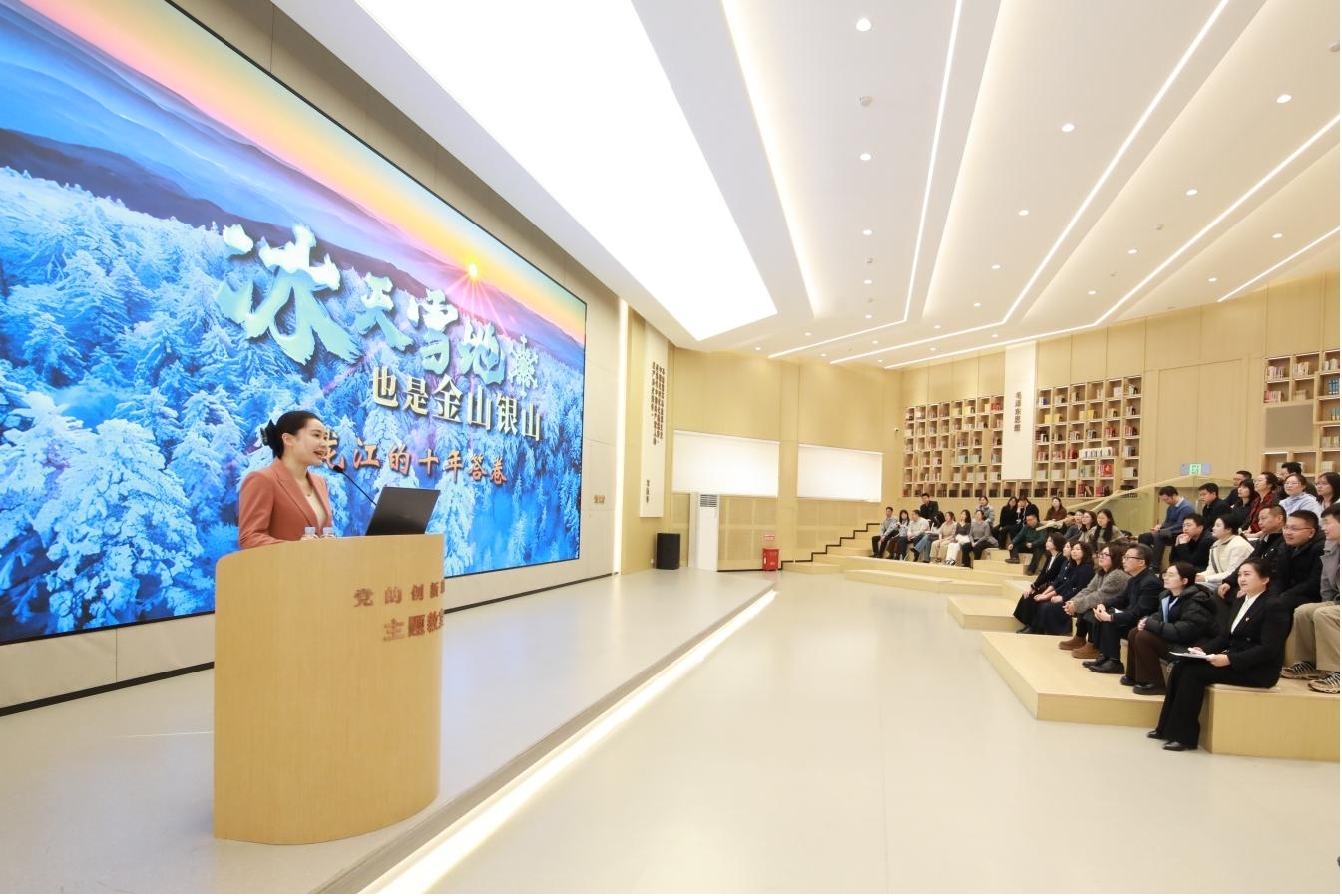 微课环节,“紧跟核心 立马学习”青年理论宣讲团队副团长唐玮怡以“冰天雪地也是金山银山——龙江的十年答卷”为题,用详实数据与生动案例展现龙江冰雪经济十年蝶变,清晰呈现从资源到产业的发展脉络。